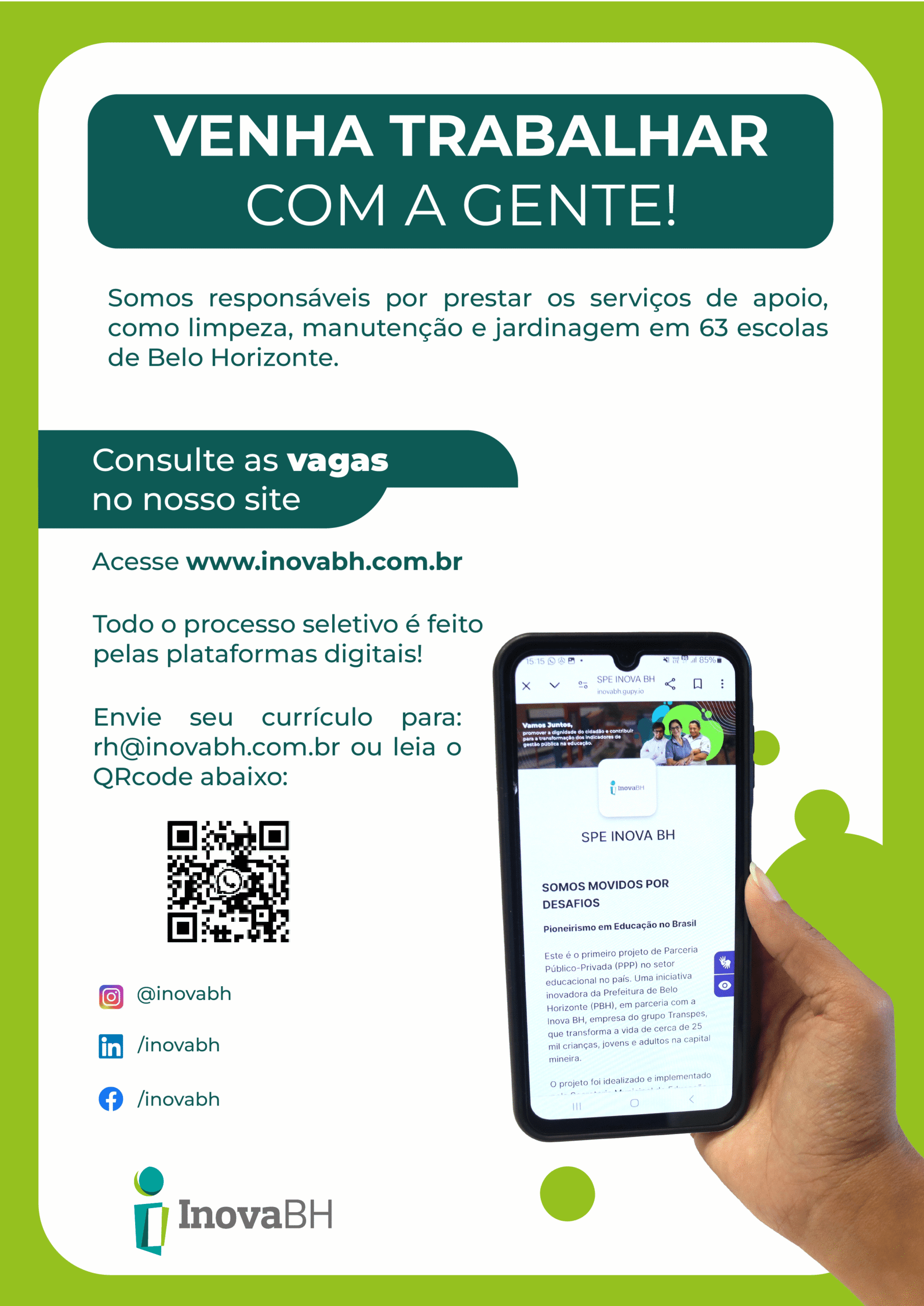 Na Inova BH, temos um propósito claro: promover a dignidade do cidadão e transformar os indicadores de gestão pública. E sabe como conseguimos isso? Vivendo os nossos